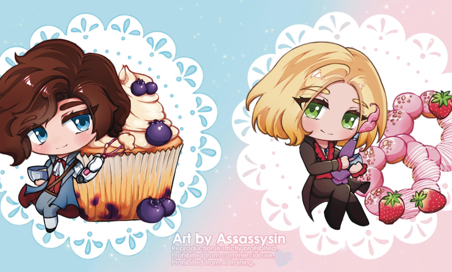 🌸 Clients are free to use the commissioned piece for personal use, so long as they do not claim that they personally made the piece. Commissions are prohibited from use in any monetary or commercial purpose, including the sale and minting of NFTs, and feeding image information to AI "art" generators.