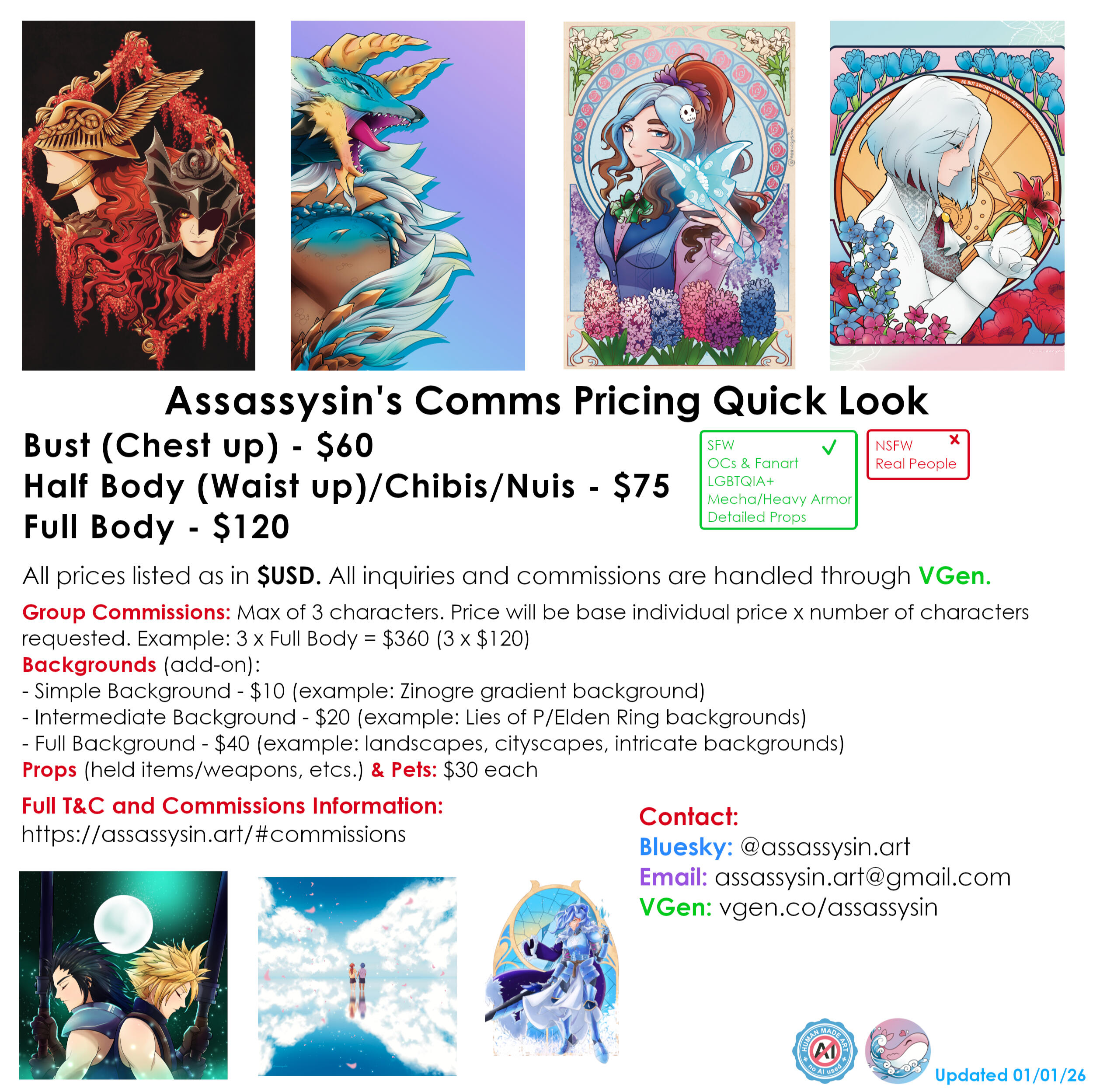🦋 Completion times may vary dependent on complexity of the piece and real life occurrences. On average, a full body rendered piece may take upwards of a month.