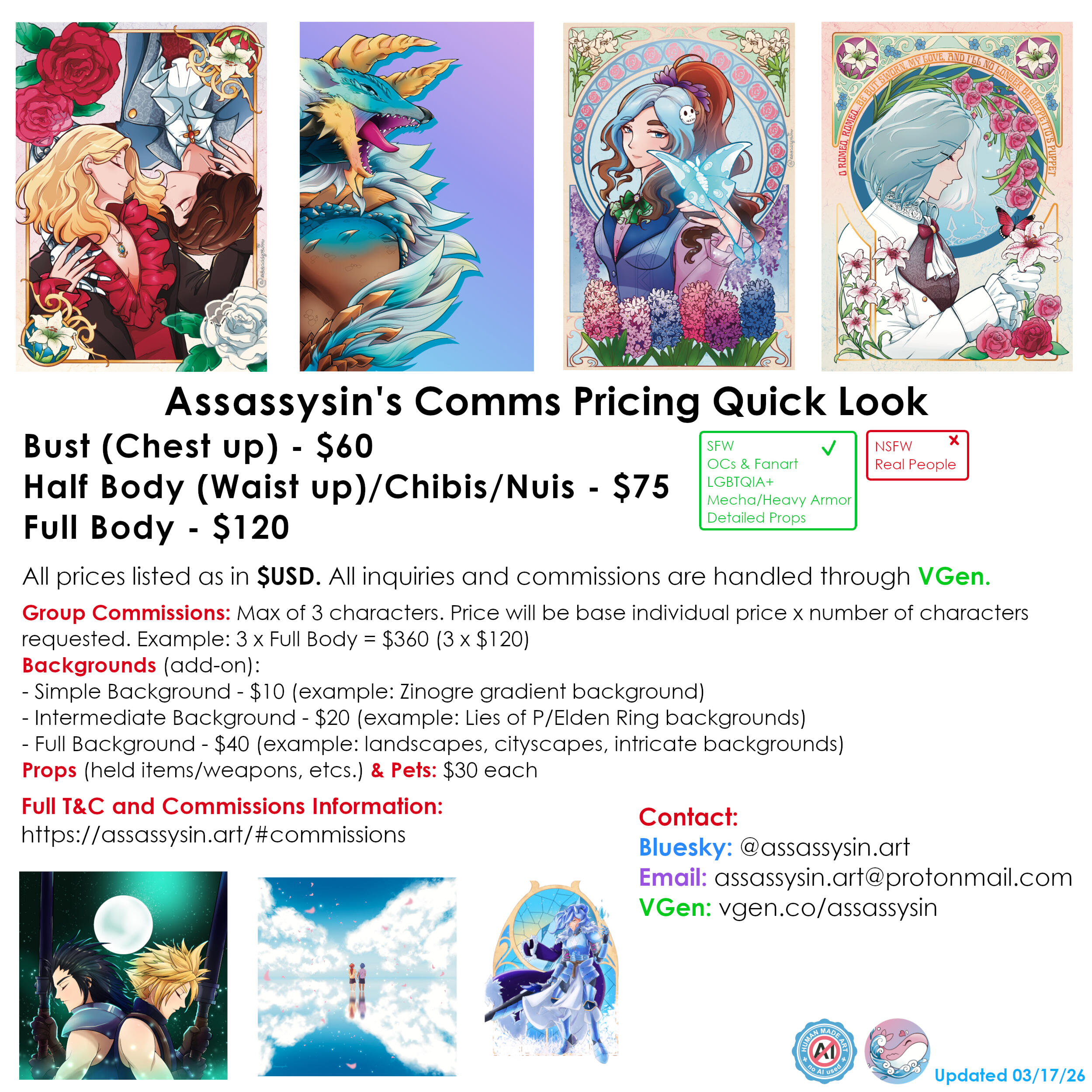Please check Pricing prior to requesting a Commission!Additionally, "Open for Inquiry" does not guarantee a commission spot. Depending on my current workload, I may decline your commission or work out a completion date in the future.